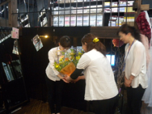 今日が卒業ということで昼間からお花やプレゼントの準備でこそこそビックリ