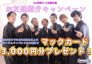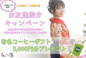 9/30までにお友達のご紹介+振袖セットレンタル頂くと双方に、