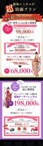 2020年・2021年成人様限定で全32点小物付きの振袖オーダーレンタルセットが198,000円(税別)✨