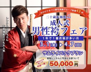 只今Azでは、男性袴フェア開催中👨