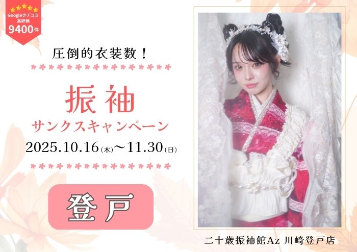 ぜひこの機会に、二十歳振袖館Az 川崎登戸店へお越しください。