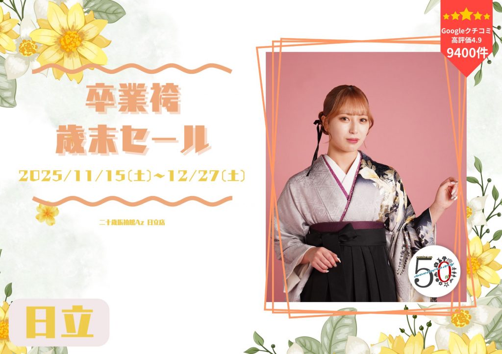 卒業袴選びは二十歳振袖館Az 日立店で。