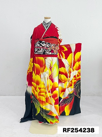 【振袖】赤/黄色・牡丹