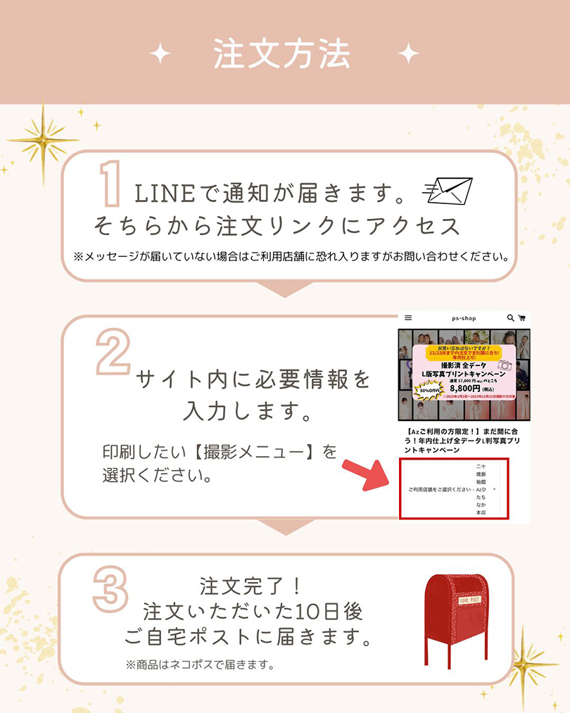 撮影いただいた全データ 分 すべてを L版写真プリント