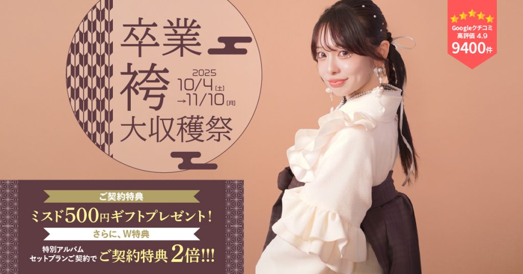 ・最後の早期割引特典チャンス!撮影付き卒業袴レンタルが5%オフ!